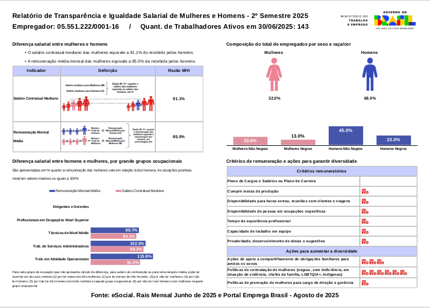 O Relatório de Transparência Salarial está disponível para consulta e traz dados importantes sobre nossa política de remuneração, reforçando nosso compromisso com a transparência e a igualdade de oportunidades.